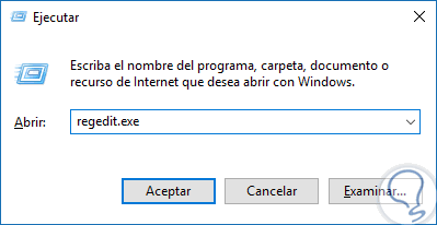 En la ventana de ejecutar escribimos regedit.exe y pulsamos Aceptar o Enter.