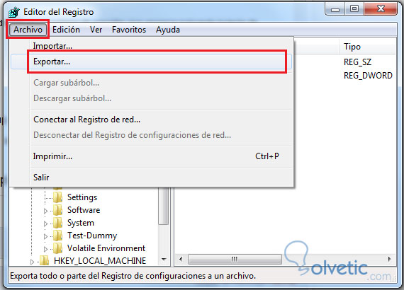 Es bueno realizar una copia de seguridad del Registro, sobre todo si vamos a realizar algunos cambios (esto por seguridad). Es muy fácil y sencillo.