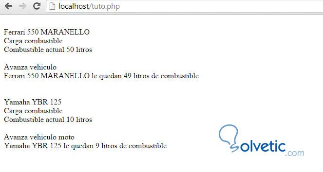 echo 'Carga combustible '.$moto->cargacombustible(10).'<br>';