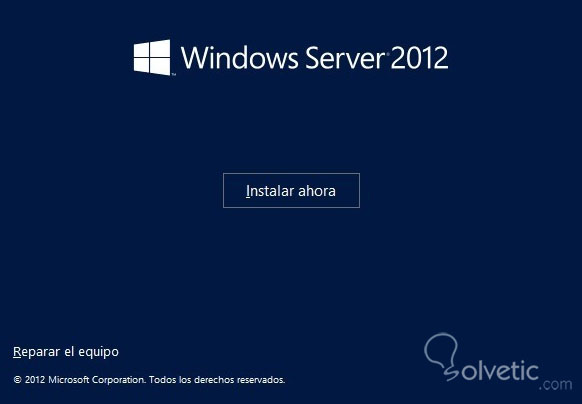 Arrancamos el servidor (donde queremos restaurar esta contraseña) con el DVD de instalación de Windows Server 2012. Seleccionamos la opción Reparar el equipo "abajo a la izquierda"