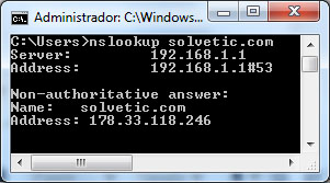 Si lo que se quieres es consultar los servidores DNS, el comando para esta tarea es nslookup, podremos ver los servidores DNS y la dirección IP asociada al nombre que solicitamos:
