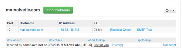 O también más fácil es usar esta web para verificar registrosMX, ponemos el nombre de dominio y lo encuentra: