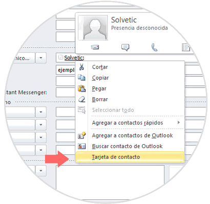 Nos ponemos encima del contacto y pulsamos botón derecho (En el que queremos modificar su formato al enviarle cosas).