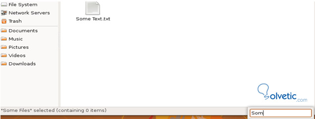 Lo que este tip describe es bastante obvio pero la mayoría no sabe que es posible, para buscar rápidamente por una lista de archivos en Nautilus, simplemente empezamos a escribir la palabra clave y aparecerá un pequeño campo de texto en la parte inferior.