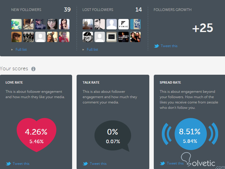 Adicionalmente podremos ver estadísticas de los nuevos seguidores a nuestra cuenta y de los seguidores que hemos perdido, así como que tanto hemos crecido. Podemos también ver el porcentaje de engagement y que tanto nuestro contenido es comentado. Esto es sumamente útil ya que nos ayuda a realizar ajustes en nuestra estrategia en el caso que veamos que estos números no nos favorecen.