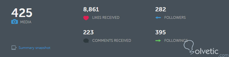 Pero donde en realidad brilla esta aplicación es en el apartado de estadísticas, donde podremos ver la cantidad de contenido publicado, la cantidad de Me gusta y comentarios recibidos, así como el número de seguidores y seguidos.