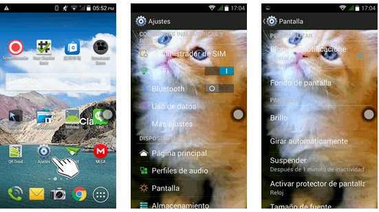 Lo que corresponde a continuación es reiniciar el equipo móvil, para que apliquen todos los cambios. Al encender, entrar por el ícono de Ajustes y ya se debe ver en el menú interno la imagen que fue seleccionada por el usuario, así también, se visualiza en el resto de menús de opciones de todo lo que concierne a Ajustes del Sistema.