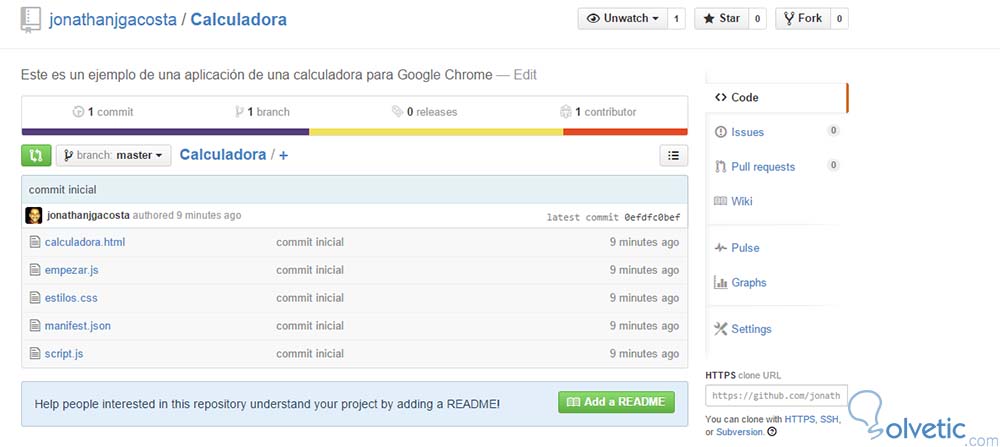 Como vemos podemos ver todos nuestros archivos, así como las opciones que nos brinda GitHub para el trabajo colaborativo. Con esto finalizamos este tutorial donde pudimos subir de manera exitosa un proyecto a nuestro repositorio en GitHub con tan solo unos simples pasos.