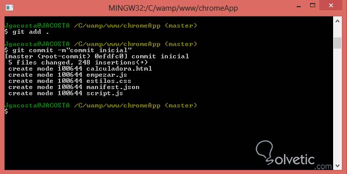 5- Añadimos todos los archivos con add . y realizamos nuestro commit inicial: