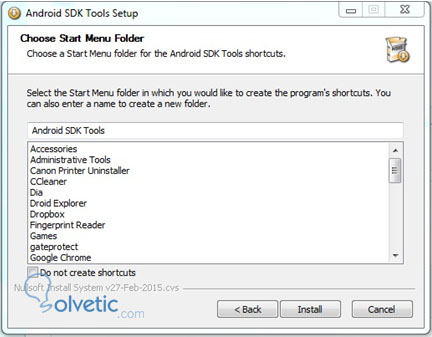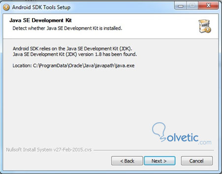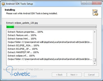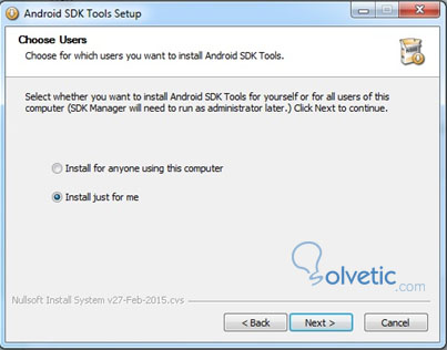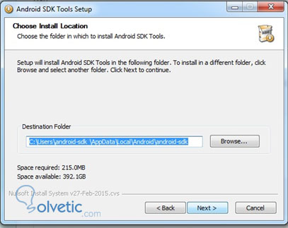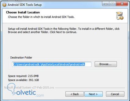 4. Se instalará en la ruta correspondiente al usuario solicitado. En este caso, se utilizó el usuario “android-sdk”. Espacio requerido en disco duro: 215MB.