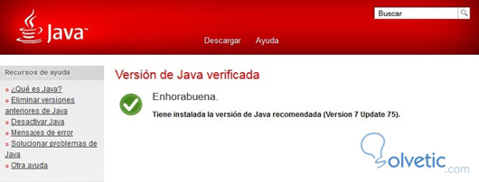 2. Si aparece el siguiente mensaje, la versión 7.75 de Java se encuentra completamente operativa e instalada sin conflictos.