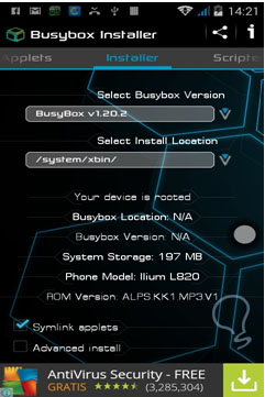 BusyBox Installer: Esta aplicación sólo funciona si el dispositivo se está “rooteado”. La misma se encuentra disponible en la aplicación Play Store del sistema operativo Android.