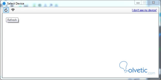 Si no se tiene conectado el dispositivo móvil Android aparecerá la ventana vacía. Conectar por USB.