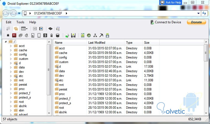 Pantalla de arranque del Droid Explorer