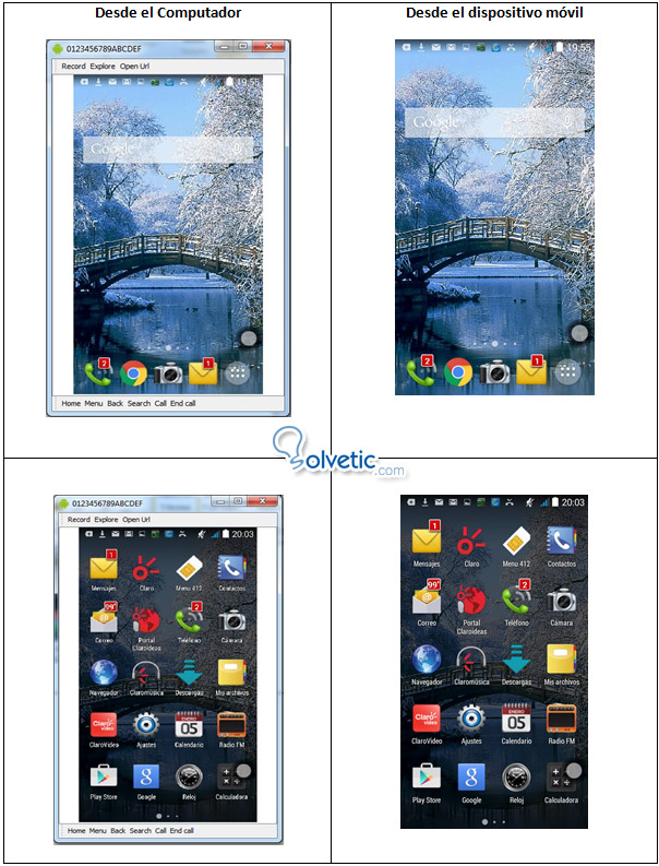 A continuación aparecerá la pantalla del Dispositivo Android. Todas las acciones ejecutadas en el equipo serán visualizadas a través del ordenador.