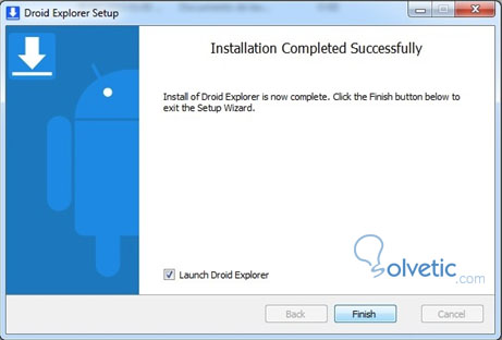 6. Completa la instalación de Droid Explorer. Hacer click en "Finish".