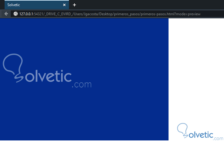 Hay dos formas de visualizar nuestro trabajo, la primera y la más sencilla la podemos realizar desde la herramienta, para ello nos vamos a la pestaña Archivo y seleccionamos Vista previa en el navegador, lo cual nos abrirá de forma inmediata la animación en nuestro navegador web por defecto: