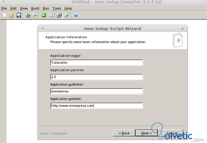 El siguiente paso sera configurar a que menú se integrara la aplicación y que iconos mostrara, luego en la siguiente pantalla nos solicitara añadir los archivos txt o html con información de licencia, ayuda y los texto antes y luego de la instalación.