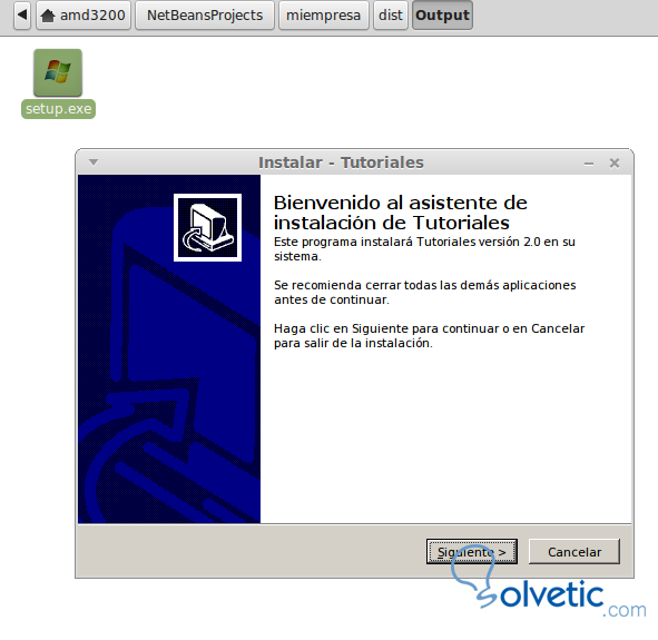 Aquí podemos observar el instalador ejecutado en Linux sobre Wine, por lo tanto funciona tanto en Windows como en Linux.