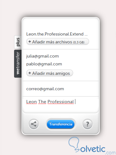 Os he mostrado donde descubrimos la aplicación para transferencia de archivos llamada WeTransfer, la cual con unos simples pasos y sin esfuerzo alguno nos permite compartir grandes archivos con nuestros amigos.