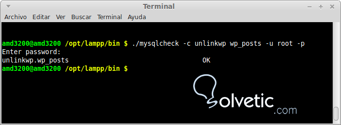 Veamos algunos ejemplos sobre como utilizar la herramienta Mysqlcheck. Si una tabla se encuentra dañada o con algún problema, mostrará un mensaje de error.