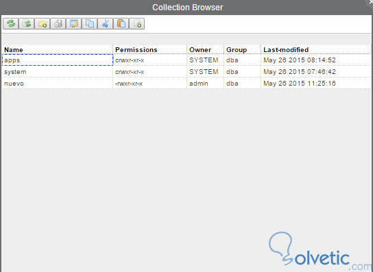 Para poder explorar nuestra Base de Datos podemos usar el Collection Browser, el Java Admin Client e incluso eXide. Para ver las colecciones que tenemos presentes vamos a utilizar el Collection Browser, el cual nos debe mostrar algo como lo siguiente: