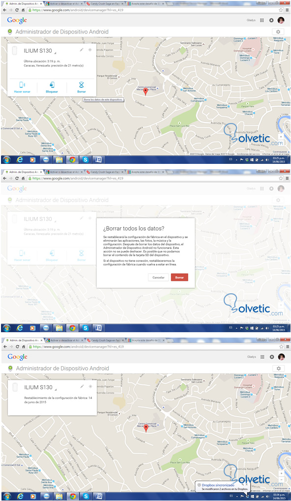 - Web: Acceda a través de la Plataforma de Android Device Manager activando la siguiente URL: https://www.google.c...nager?hl=es_419