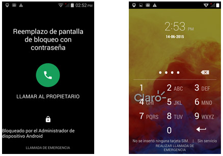 Al ejecutar la transacción el celular muestra la pantalla de bloqueo con los mensajes ingresados, para poder acceder al celular una vez que es recuperado ingrese el pin contraseña previamente configurado y utilice el dispositivo Android normalmente. (Si desea cambie su sistema de seguridad de acceso a: clave, pin, patrón, etc.)