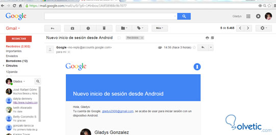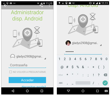 La sesión en la cuenta de Gmail debe estar previamente iniciada para lo cual debe ingresar la cuenta de correo electrónico de Gmail con la cual están identificados los dispositivos Android en cuestión y clave secreta.