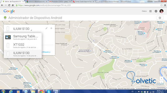Para efectos de este tutorial la cuenta de correo Gmail utilizada administra tres dispositivos Android a saber: una Tablet Samsung y 2 celulares: Motorola Moto G y S.130 respectivamente. Para acceder a la Plataforma de Android Device Manager active la siguiente URL: https://www.google.c...nager?hl=es_419.
