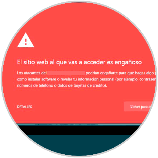 Si hay un sitio web en el que Google encuentra contenido malicioso en una página web te lo indicará y al intentar acceder a dicha web nos aparecerá el siguiente mensaje.
