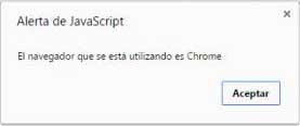 }Al ejecutar nuestro ejemplo en cualquier navegador que no sea Google Chrome no obtendremos el mensaje, sin embargo al ejecutarlo en el navegador mencionado, obtendremos el siguiente mensaje: