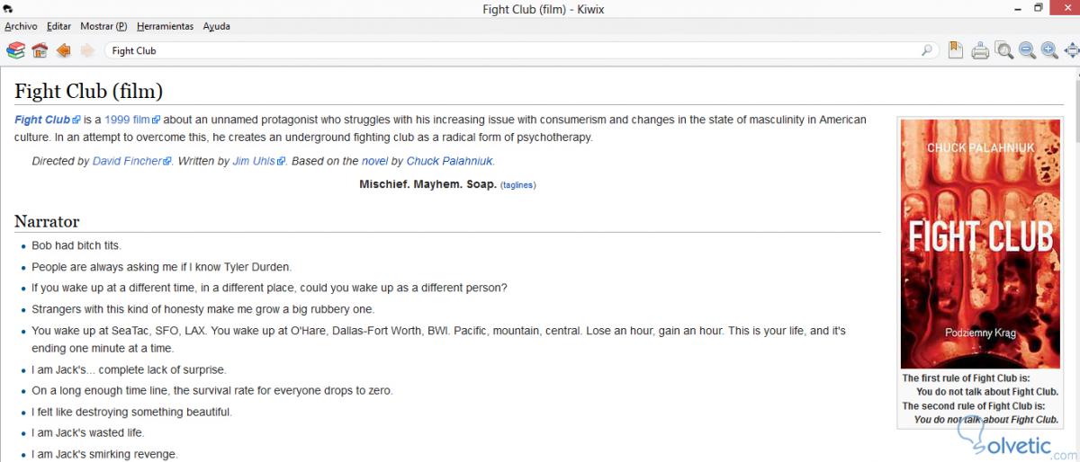 Ya aquí podemos buscar todo lo que nos interese, como nos hemos descargado el directorio de frases, vamos a realizar una búsqueda de las frases de la película Fight Club (El Club de la Pelea), veamos que nos arroja como resultado:
