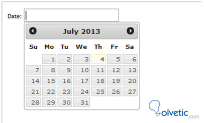 - Y por último en el HTML agregamos el id=datepicker al input indicandole que su funcionamiento que cuando se haga click sobre el mismo modifique el css y despliegue el calendario.