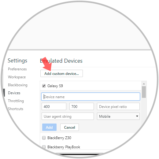 Nos aparecerán aquellos modelos que están configurador previamente o bien podemos añadir uno de forma personalizada pulsando en “Add custom device”.