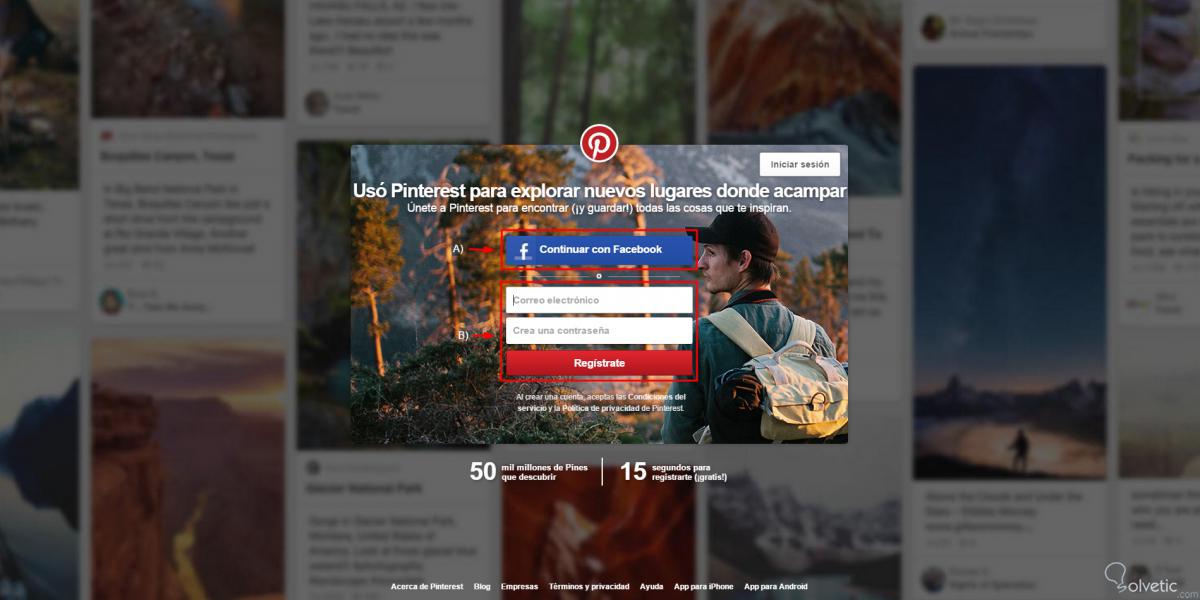 Es muy fácil crear un perfil, incluso mucho más si lo haces usando directamente tus datos de Facebook (A). Esta opción ya se traerá datos como tu nombre, clave, foto de perfil y correo, de manera que no tengas que llenar manualmente todos estos datos.