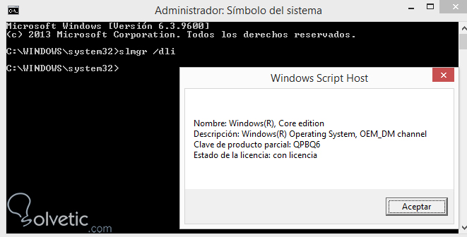 slmgr /dliPresionamos Enter y se nos desplegará una pequeña pantalla que nos indica si nuestro Windows es genuino, es decir, que la licencia esté validada y que no sea una copia de un volumen, lo cual indica que es para uso de negocios, veamos cómo luce: