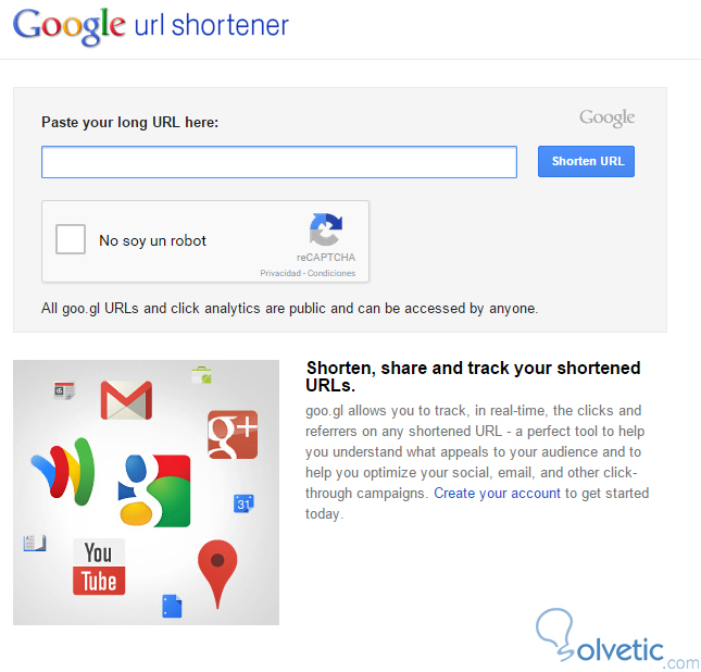 Para acortar nuestros enlaces solo debemos ir a la página oficial de Google URL Shortener la cual debe lucir de la siguiente forma: