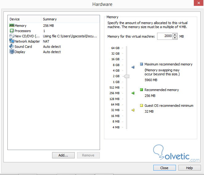 Ahora indicamos cuanto de espacio en disco tendrá la instalación de nuestra máquina virtual, como hemos seleccionado la de 64 bits, le colocaremos 20GB y luego en la sección de customización de hardware subimos la memoria RAM a 2GB. Si deseas verificar cuales son los requerimientos para cada una de las versiones puedes ingresar al siguiente artículo.