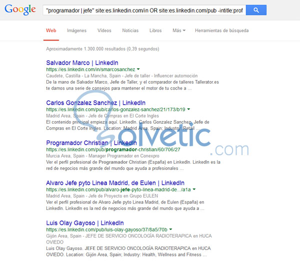 Cómo podéis ver, las posibilidades de búsquedas son infinitas, eligiendo localizaciones, poniendo en vez de .es otras para ver perfiles de otros países etc.