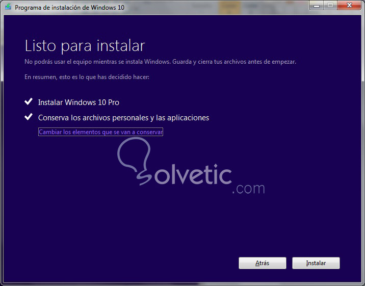 Y saldrá que está listo para actualizar a Windows 10 !! y podrás conservar los archivos personales y las aplicaciones instaladas. En este ejemplo estamos actualizando de Windows 7 Profesional a Windows 10 Profesional.