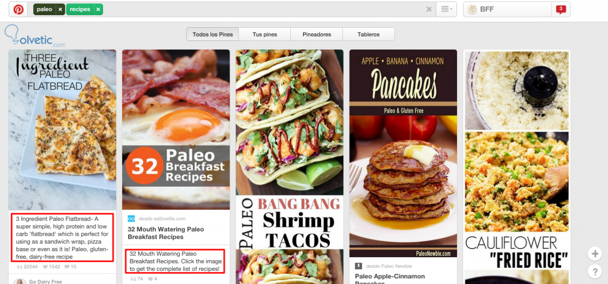 Es tentador encontrar un pin y en la descripción poner algo como “¡Qué lindo!” (créanme, soy culpable de haberlo hecho), pero en lugar de eso, es importante colocar palabras clave que se relacionen con el contenido del pin. De esta manera, cuando las personas estén buscando pines relacionados a los temas que tú has pineado, podrán encontrarte.