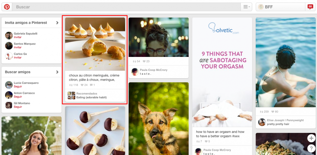 Simplemente haz clic sobre cada persona de tu interés y listo, ya la habrás seguido en Pinterest.