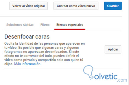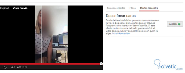 Pues bien, si lo que queremos es únicamente difuminar su cara, esto ya no es problema en YouTube.