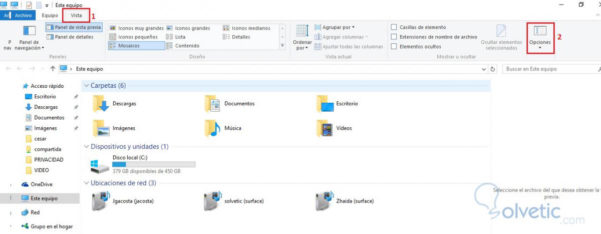 2. Pulsamos en la pestaña Vista y luego en Opciones: