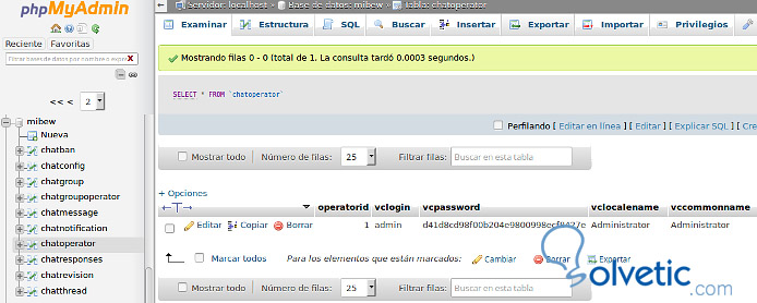 Podemos observar una tabla con su clave codificada en formato MD5. Veamos un ejemplo de como codificar y decodificar MD5 con pHp: