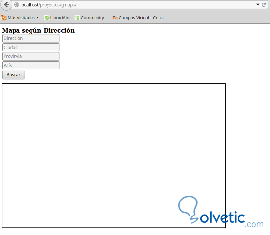 Vamos a añadir a continuación un formulario para introducir los datos y luego visualizar el mapa pero con la dirección.