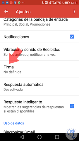 También es posible activar la firma personal en tus correos de Gmail al enviar correos desde tu teléfono móvil, para configurar esta opción tendrás que seguir los siguientes pasos: