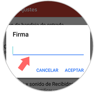En firma tendrás que escribir la firma que quieres que aparezca al mandar un email desde tu móvil. Pulsa Aceptar y estará configurada para cada vez que mandas un correo.