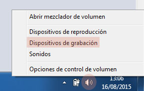 2. Aparecerán varias opciones, seleccionamos Dispositivos de grabación